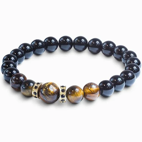 Punk Charm strand Bracelet for Men Fashion Antique Zircon Tiger eye stone bead Bracelets Jewelry Elastic Male Pulseira bileklik