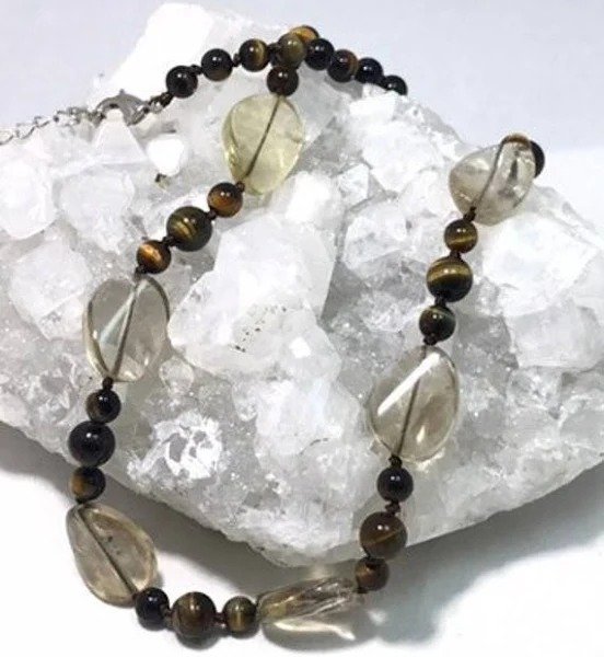 GENASTO Tiger Eye Stone Necklace Black Obsidian Beads Necklace Chakra Healing